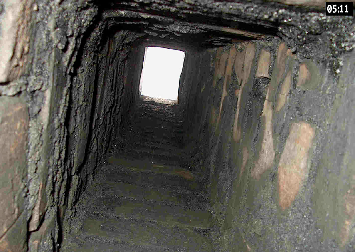 Schornsteininnenwand - Glanzruß im inneren des Schornsteines |
